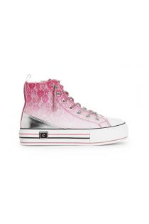 mid cut-sneaker mit degradé-spitze und strassbesetzten schnürsenkeln hot pink