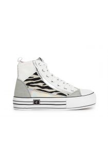 mid cut-sneaker patchwork mit zebraprint white combo