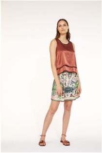 Midi-Rock aus bedrucktem Viskose-Satin. Der Druck ist ein Placed Foulard-Print