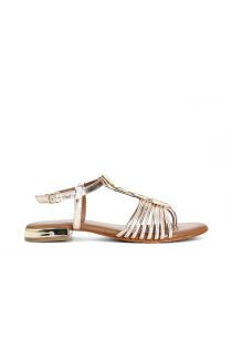 mignon-ledersandalen mit strassbesetztem dreieck gold