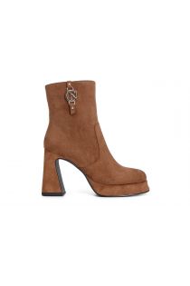 Damenstiefelette aus mikrofaser mit cafènoir-anhänger. schuhe im perfekten stil der siebziger jahre. der 95 mm hohe absatz sorgt zusammen mit der 18 mm hohen plateausohle für ein ausgewogenes verhältnis von höhe schönheit und komfort.