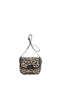 Mini-Umhängetasche mit Patte aus Stoff in Leopardenoptik und gefütterten Einfassungen