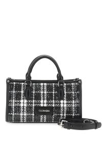 Mini-Tasche aus schottischem Stoff mit Paillettenbesatz, Details und Griffen aus Kunstleder, Frontplakette mit Café-Logo und abnehmbarem Schulterriemen für einen Hauch von Glamour.