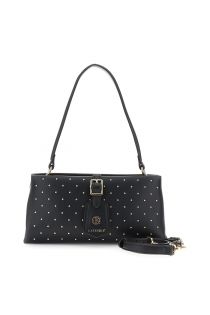 Mini-Schultertasche aus Kunstleder mit Mikronieten und dekorativem Schnallenanhänger. Inklusive abnehmbarem Schulterriemen für einen vielseitigen und eleganten Look.