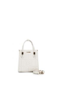 mini-tragetasche geprägte, gesteppte optik mit geometrischem muster. cream