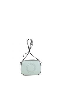 Bandoliera-Tasche im Camera Bag Stil, mit personalisierter, mit Logo-Kreis in perforierter Verarbeitung verzierter Vorderseite