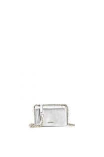Umhängetasche mit überschlag material mit metallic-effekt und kettenschulterriemen. innen: fach und kartenfach.