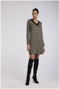 minikleid mit v-ausschnitt und jacquard-verarbeitung geometric sand