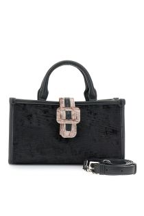 Mini-Tasche aus zerknittertem Samt mit Details in Lederoptik und passender Zierschnalle: elegant und kompakt, perfekt für originelle Looks und die Modetrends der Herbst-Winter-Saison.