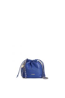minitasche mit kordelzugverschluss und kettenschulterriemen mit eleganten fäden blue