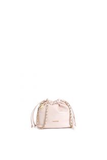minitasche mit kordelzugverschluss und kettenschulterriemen mit eleganten fäden powder