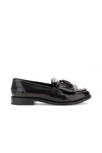 mokassins aus gebürstetem leder mit fransen bordeaux