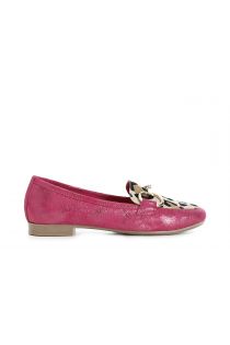 mokassins aus glitzerleder und rauleder mit animalierdruck hot pink