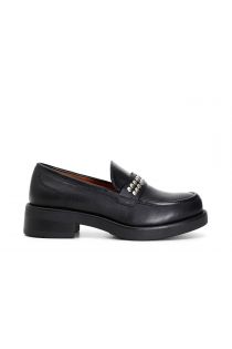 Mokassins aus Leder mit Ziernieten auf dem Riemen.