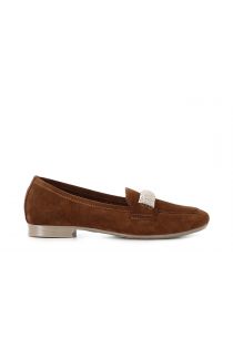 mokassins aus rauleder mit farblich passender strassschlaufe tan