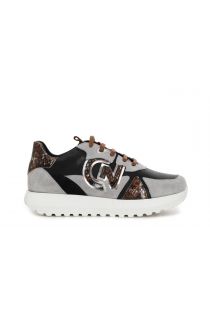 Multimaterial-Sneaker aus Leder mit seitlichem Logo und einem weiteren Logo auf der Zunge