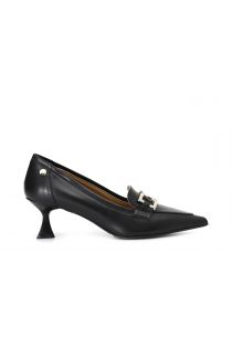 Damen-pumps aus nappaleder in einem eleganten und femininen stil. der schuh ist mit einem besonderen accessoire auf dem oberteil ausgestattet. höhe des diabolo-absatzes 65 mm. weiche innensohle aus leder.