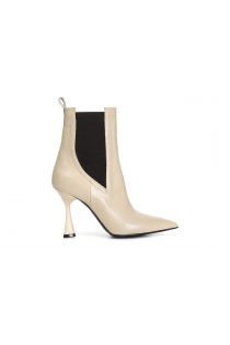 Stiefelette aus nappaleder mit seitlichem gummizug. schuh in elegantem und femininen stil. schlanker 95 mm diabolo-absatz. weiche innensohle aus leder.