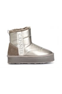Stiefelette aus nylon verziert mit einem cafènoir-logo-band aus strass das futter ist aus kunstfell. 35 mm hohe plateausohle