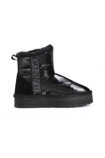 Stiefelette aus nylon verziert mit einem cafènoir-logo-band aus strass das futter ist aus kunstfell. 35 mm hohe plateausohle