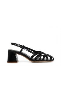 offene lacklederschuhe mit asymmetrisch geflochtenem gitter black