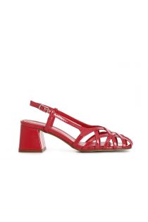 Offene lackschuhe mit asymmetrischem gewebtem gitter. abgerundete schuhform. schnürung hinten. 45 mm hoher absatz. sehr bequem perfekt für den täglichen gebrauch.