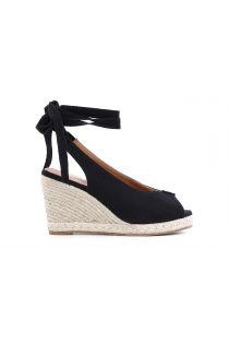 Offene Schuhe mit Bändchen im Römerstil aus Canvas und Keilsohle aus Hanf