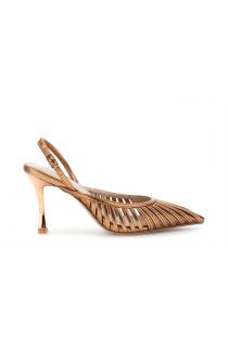 offener zehenbereich mit dekolleté und synthetischen riemen in laminierter lederoptik bronze
