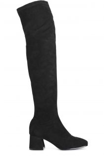 Stretch-stiefel bis oberhalb des knies. 55 mm hoher absatz. bequeme innensohle aus leder. schuhe mit großer persönlichkeit.