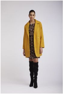 oversize-zweireihiger mantel aus bouclé-stoff ocra