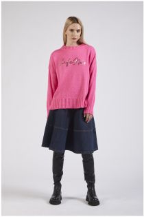 Pullover aus einer woll-viskose-mischung in weiter passform. mit glitzernden pailletten besticktes logo.
