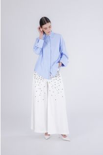 Oxford-hemd aus baumwolle für damen mit 3/4-ärmeln. elegantes design mit schmuckdetails an manschetten und oberstem knopf. ideal für stilvolle tages- und abendgarderobe frisch und vielseitig. das model ist 171 cm groß und trägt größe s. passform: normal.