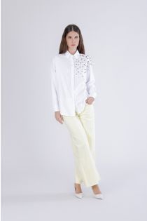Gerade geschnittenes herrenhemd aus oxford-baumwolle mit klarem modernem design. die strass- und nietenapplikation auf der rechten vorderseite verleiht dem hemd glanz und charakter. elegant vielseitig und feminin. das model ist 175 cm groß und trägt größe s. passform: normal.