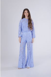 Elegante und feminine palazzo-hose aus spitze mit elastischem bund hinten. der weite schnitt schmeichelt der figur und bietet komfort und stil – ideal für formelle anlässe abendgarderobe oder einen raffinierten look. das model ist 175 cm groß und trägt größe s. passform: normal.