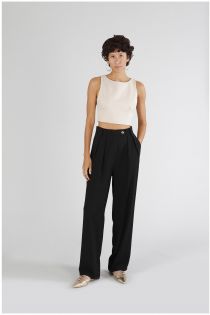 palazzo-hose mit bundfalten black