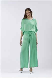 Weite palazzo-hose mit gummizug in der taille aus viskose-satin. bequem und praktisch für einen tadellosen freizeitlook.