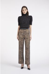 Elegante Palazzohose mit hohem Bund aus einem edlen Jacquard-Stoff mit Riegel aus Satin