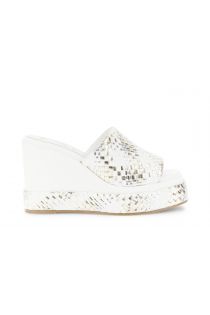 pantoffelsandalen mit synthetischem gewebe und laminiertem keilabsatz multi silver