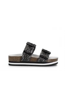 pantoletten aus geflochtenem raffiabast mit doppelter schnalle black