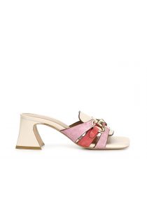 pantoletten aus leder und rauleder mit accessoire multi beige