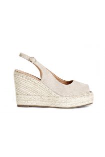 Peeptoe-sandalen aus canvas. 10.5-cm-seilkeil und 3.5-cm-plattform. verstellbarer riemen. innensohle aus leder.