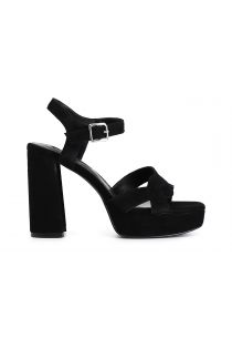 Sandalen wildleder. gekreuzte bänder vorne. riemchen mit verstellbarer schnalle. innensohle leder. 30 mm hoher plateauschuh. 110 mm hoher absatz.