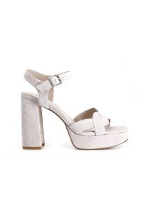 Sandalen wildleder. gekreuzte bänder vorne. riemchen mit verstellbarer schnalle. innensohle leder. 30 mm hoher plateauschuh. 110 mm hoher absatz.