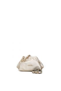 Pochette mit farblich passender kette mit schnappverschluss und optionalem schulterriemen.