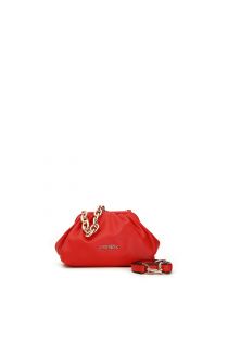 Mit Schnappverschluss zu öffnende Pochette mit Kette in passendem Farbton und dünnem optionalen Schultergurt