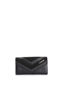 portemonnaie mit überschlag und geprägten streifenapplikationen black