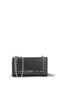 portemonnaie mit zwei fächern, nietenapplikation und kettenschulterriemen black