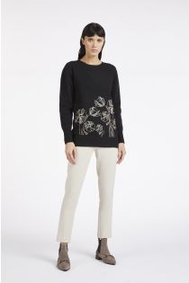 Pullover mit rundem Halsausschnitt mit Blumenstickerei am Abschluss