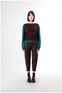 Pullover aus warmem und weichem wollmischgarn. stockinettenstich und jacquard-verarbeitung für unseren „be noir“-slogan verziert mit fachmännisch applizierten strasssteinen. erhältlich in einer sehr trendigen zweifarbigen variante und zwei einfarbigen varianten.