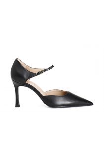 Geteiltes seitlich offenes dekolleté an der schmalen lederform mit personalisierter schnalle. feiner absatz 87 mm hoch. futter und innensohle sind aus leder. schuh mit elegantem und femininem stil.
